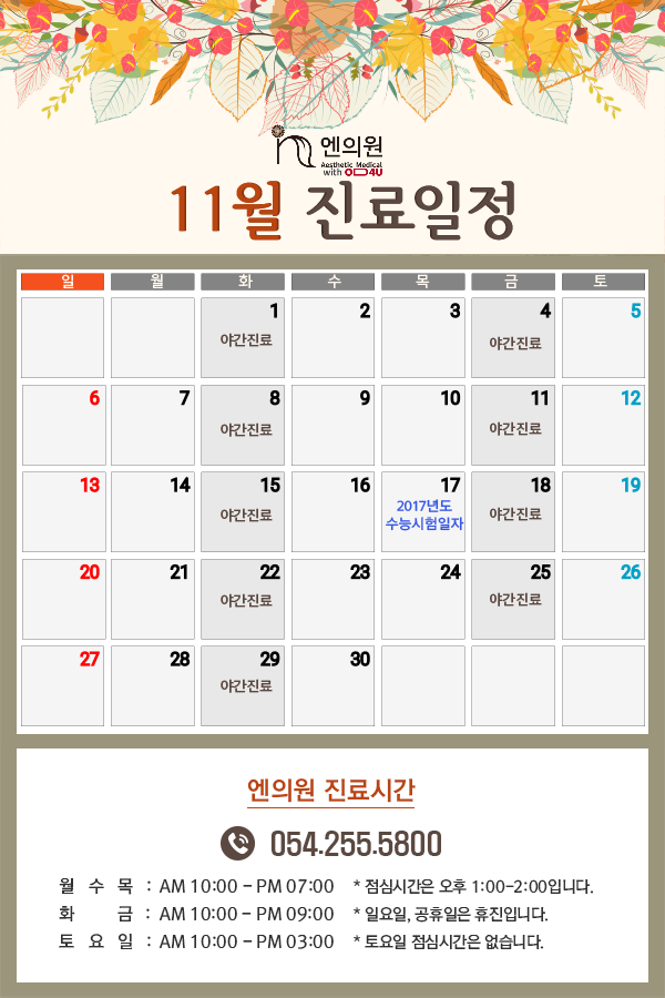 엔의원 2016년 11월 진료일정입니다